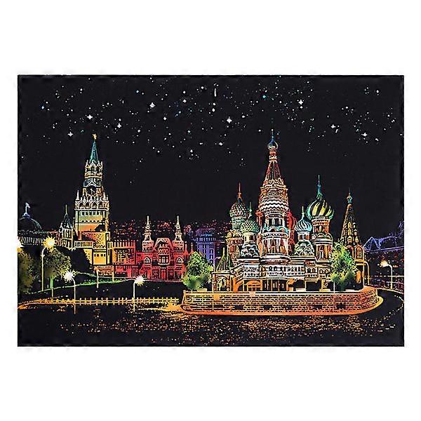 (orange) Scratch paper 405 x 285 mm, art painting city night scene black coated orange