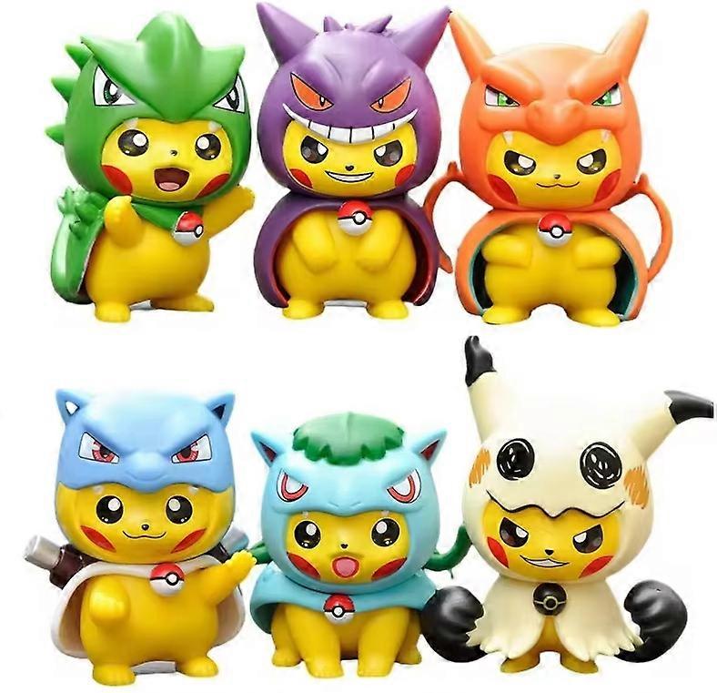 6Pcs/1Set Pocket Monsters Anime Figure Kawaii Pikachu In Disguise Action Figures PVC Desktop Decorations Model Dolls Toy Gifts