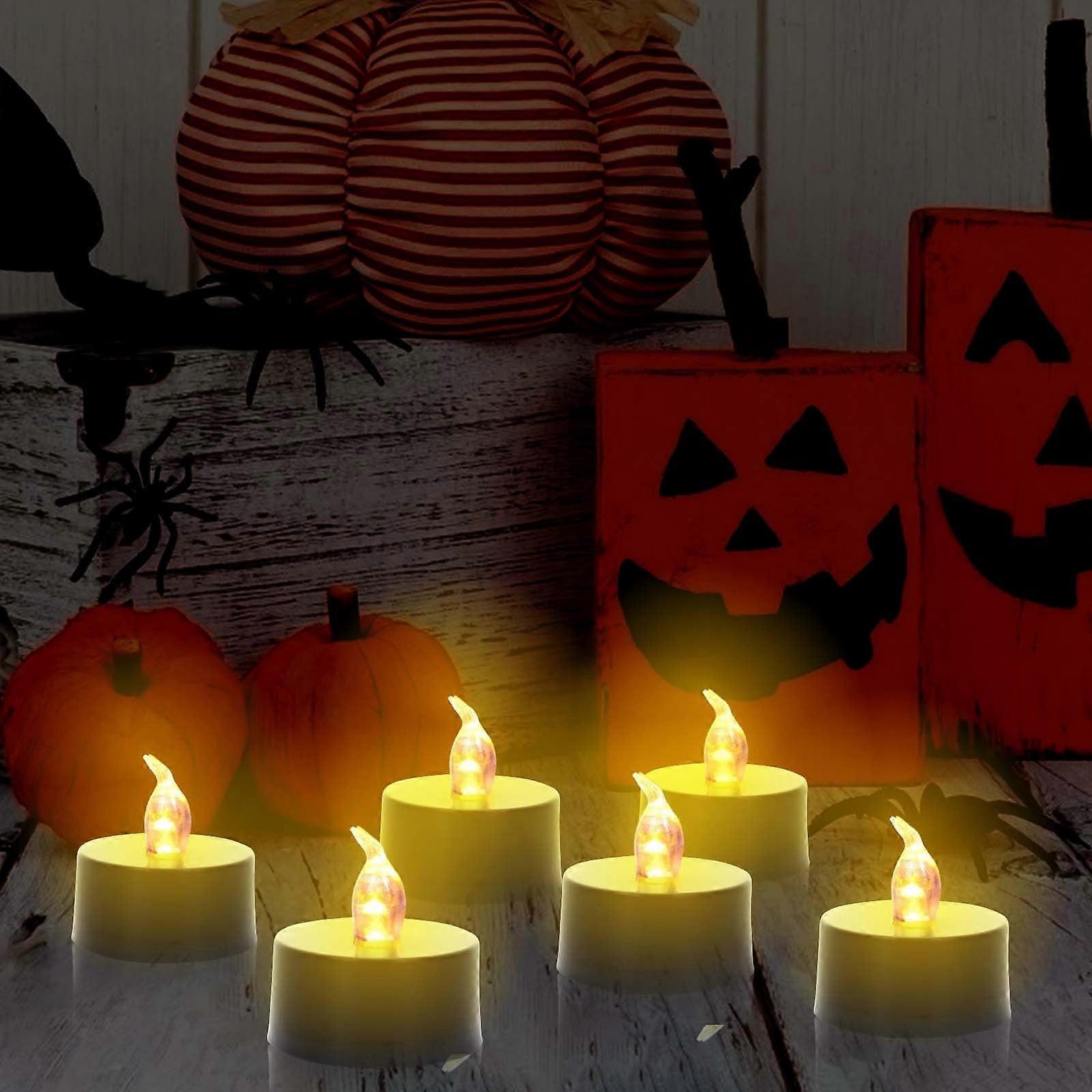 JLFNYA Halloween Candles Clearance, 6pcs Flickering Tea Lights, Battery Operated, Realistic Bright Tealights Compatible with Halloween Party, Wedding
