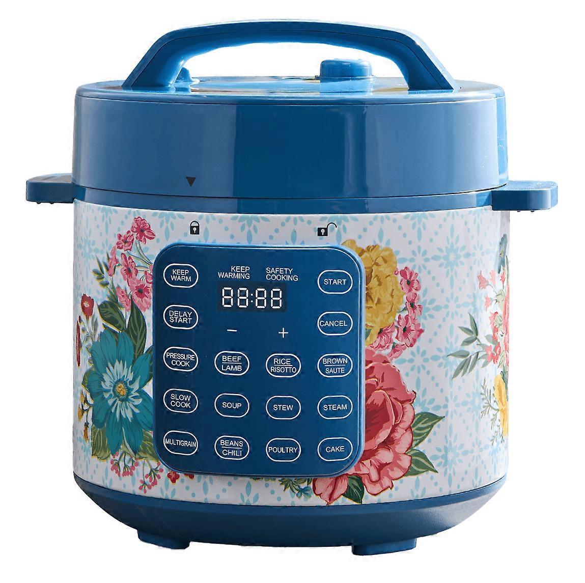 The Pioneer Woman 6-Quart Pressure Cooker with Touch Control Display is a stylish and versatile appliance that boasts a charming floral design, along with a convenient blinking display and touch control interface. Whether you're a busy home cook or a culinary enthusiast, this multi-cooker is sure to become your new go-to kitchen companion. With 12 smart cooking recipes pre-set, you can easily prepare a variety of delicious meals with just the touch of a button. From soups and beans to rice, poultry, cake, beef, eggs, and more, this appliance offers a range of cooking functions that make meal prep a breeze. Plus, with a six-quart capacity that serves up to a family of six, this is the perfect size for any household. It offers unparalleled versatility, allowing you to pressure cook, slow cook, saute, steam, warm, and even make rice with ease. And with the pressure cooking function being up to 70% faster than traditional cooking methods, you can enjoy healthy and delicious meals in no time. Whether you're looking to whip up a quick weeknight dinner or prepare a hearty weekend feast, The Pioneer Woman 6-Quart Pressure Cooker with Touch Control Display has got you covered. Meet Ree: Ree Drummond is a NY Times Best Selling Author, TV personality, social media phenom, and the woman behind the popular Pioneer Woman lifestyle blog that started it all. She's also a lover of butter, basset hounds, Ethel Merman, her hunky, cowboy husband Ladd, and their four kids. Her casual country style and delicious recipes have made her a go-to for all things cooking and entertaining. The Pioneer Woman Fancy Flourish 6-Quart Pressure Cooker with Touch Control Display 7-in-1 functionality means you can pressure cook, slow cook, saute, cook rice and yogurt, steam and warm all in one appliance Large 6-quart capacity cooks for up to 6 people Simple one-touch cooking Provides 12 smart recipes for easy pressure cooking, including making soups, beans, rice, poultry, cake, beef, egg and more