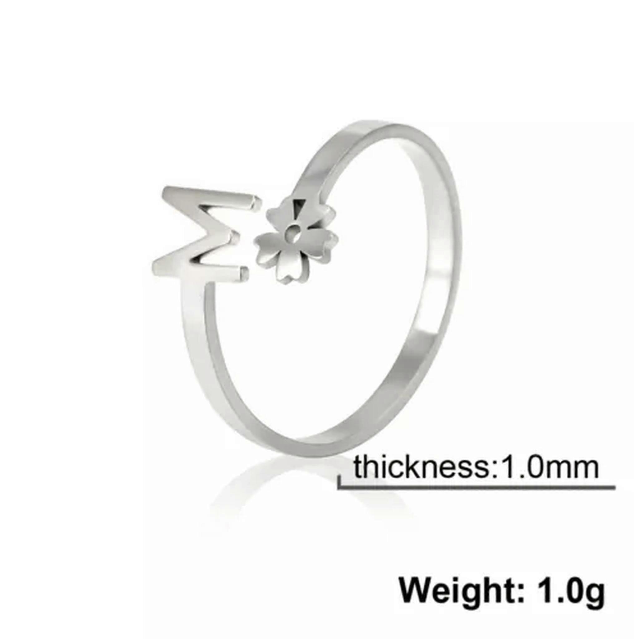 RSAMD Initial Letter Alphabet Women's Stainless Steel Rings Adjustable Daisy Jewelry-Adjustable-M Steel