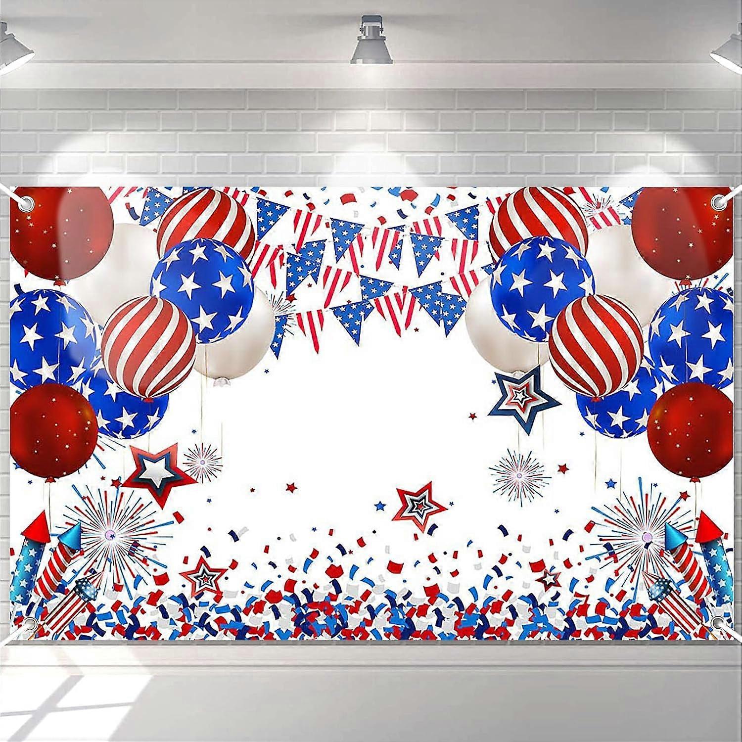 4th of July Party Banner Backdrop, Red White Blue Patriotic Photo Booth Decor for Independence Day & Labor Day Celebrations