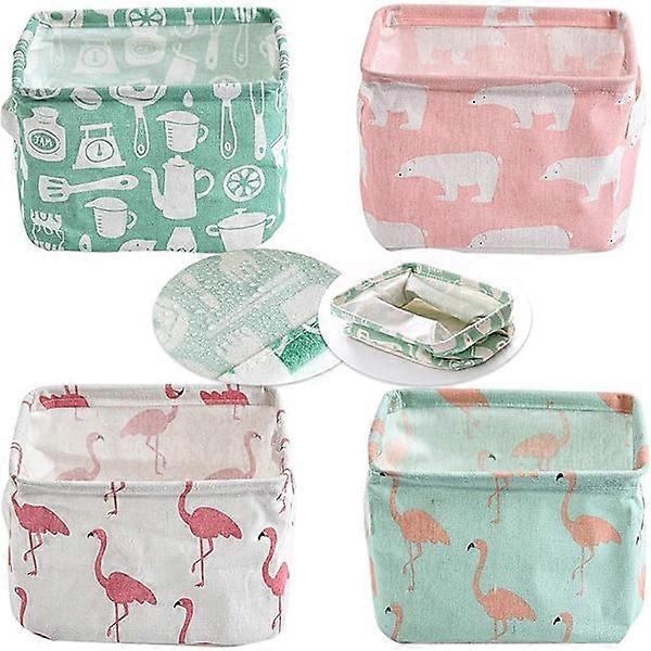 Set of 4 Storage Baskets, Small Practical Foldable Storage Boxes in Linen Fabric, Desk Storage Basket, Fabric Storage L