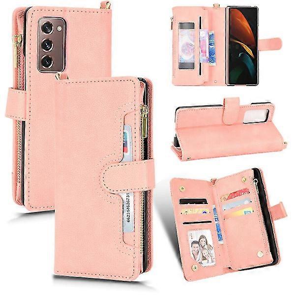Case for compatible with Samsung Galaxy Z Fold 2 Cover Zipper Magnetic Wallet Card Holder Pu Leather Flip Case Pink A