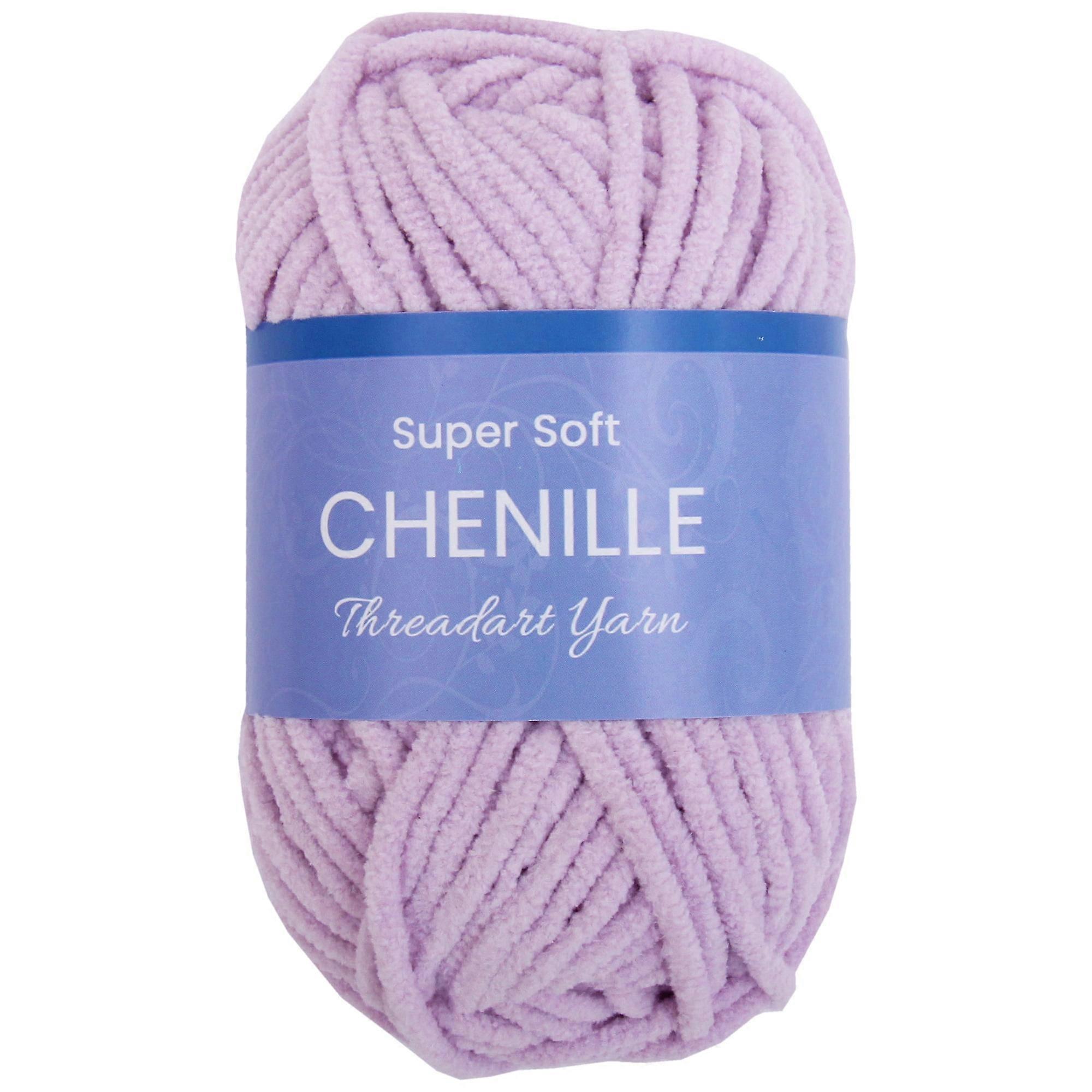 ThreadArt Chenille Yarn for Crocheting, Knitting, Amigurumi, Super Soft Plush Velvet Yarn - 50 Gram 60 yds #5 Fluffy Yarn Skeins - Lavender