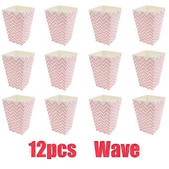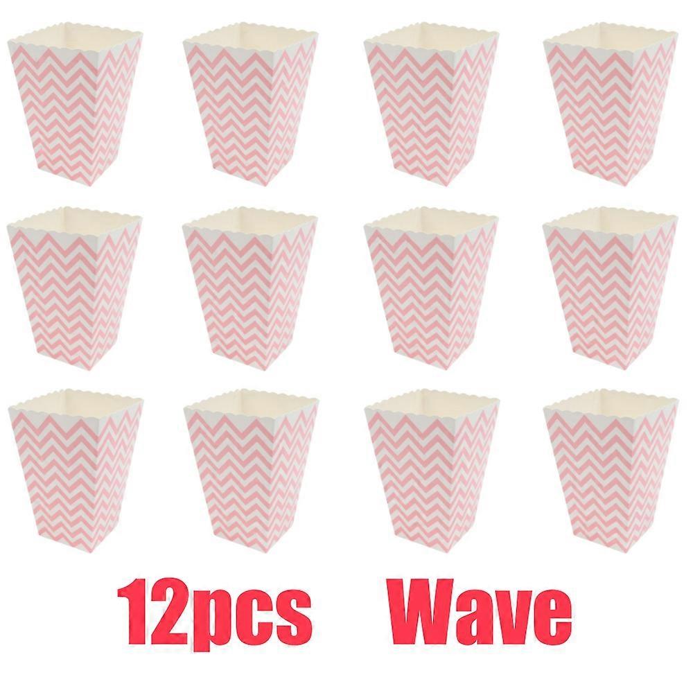 12pcs Pink Paper Popcorn Boxes Striped Polka Dot Design Candy Cardboard Buckets For Theater Carnival Birthday Party Favor Bags
