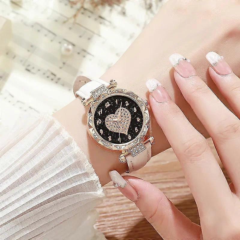 Ladies' Fashionable Rhinestone Heart-shaped Dial Quartz Watch, Leather Strap Watch, Casual Trendy Wristwatch Suitable for Daily Wear
