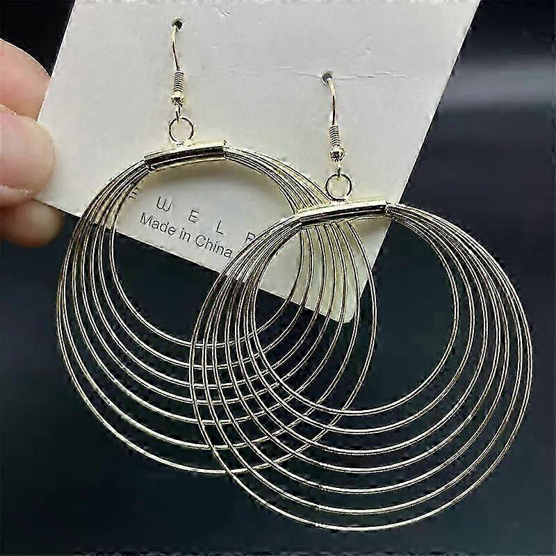Fashion Exaggerated Multilayer Big Round Cirlcle For Women Hip Hop Rock Statement Dangle Party Jewelry