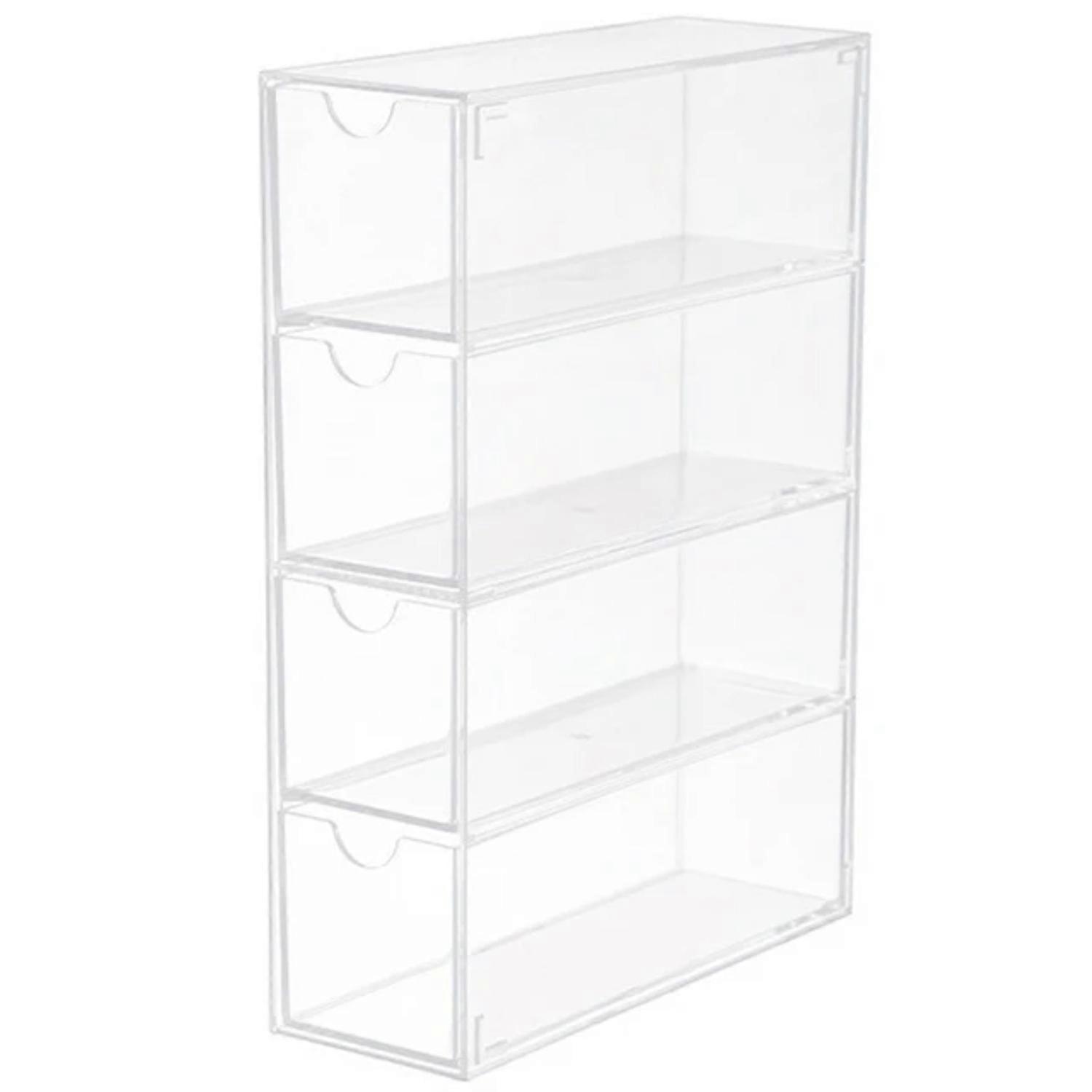 DEKAXID 4 Layers Glasses Storage Box Stackable Display Holder Reusable Acrylic Cosmetics Makeup Drawers Organizer for Jewelry Sunglasses