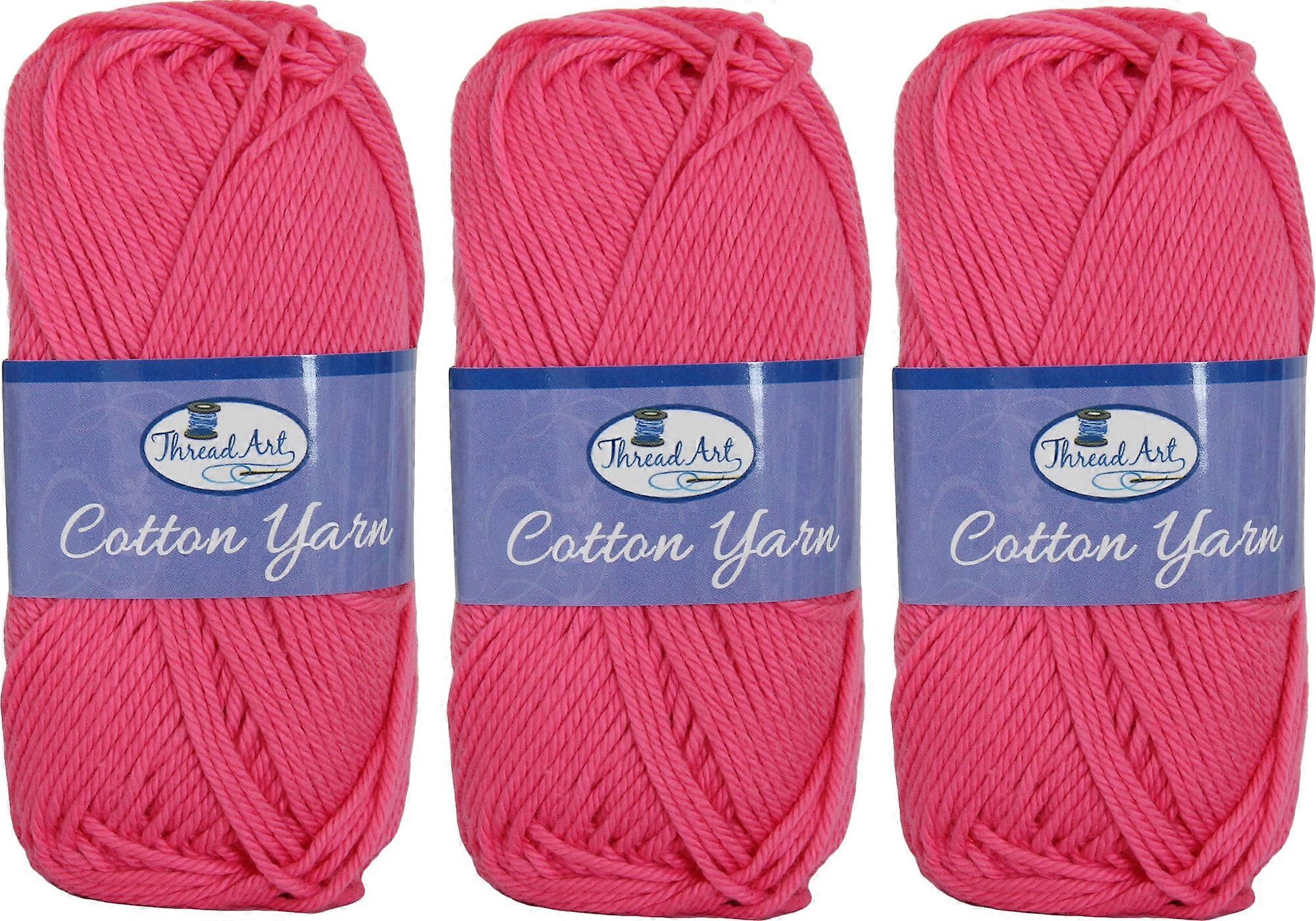 3 Pack of 100% Pure Cotton Crochet Yarn by Threadart | Hot Pink | 50 gram Skeins | Worsted Medium #4 Yarn | 85 yds per Skein - 30 Colors Available