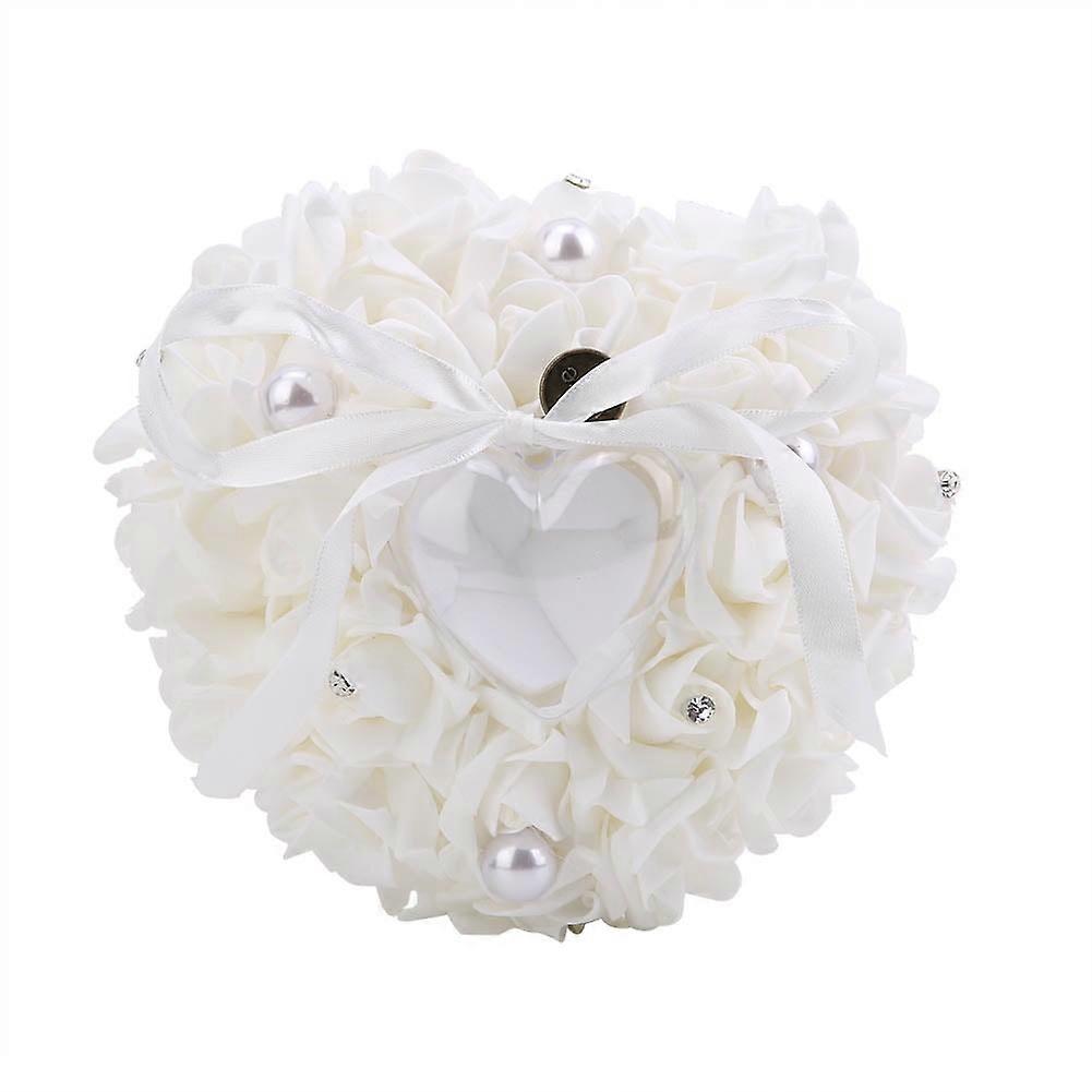 Ring Box - Romantic Wedding Favors Heart Shaped Jewelry Gift Ring Box Pillow Cushion(White)