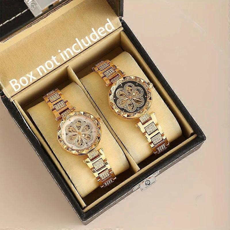 Women's luxury rhinestone flower mechanical watch, stylish rotating dial. Skull fashion analog stainless steel watch, alloy strap and case,