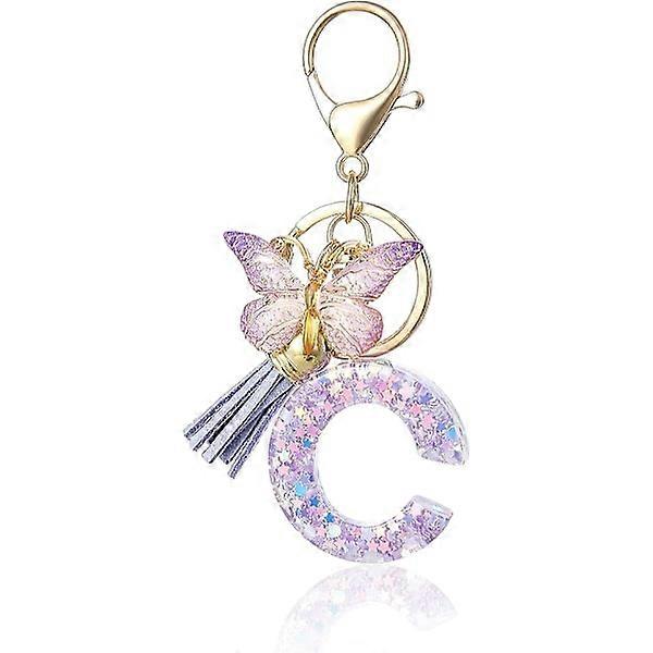 Purple Resin Alphabet Initial Keychain with Butterfly Dust Pendant, Letter C - Compatible with Wallets, for Women