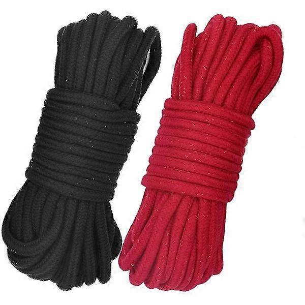 Soft Cotton Rope 10m Long 8mm Thick Versatile Durable Long Rope. Tie Rope Lace Rope (2 Pack, Black + Red) - Perfect