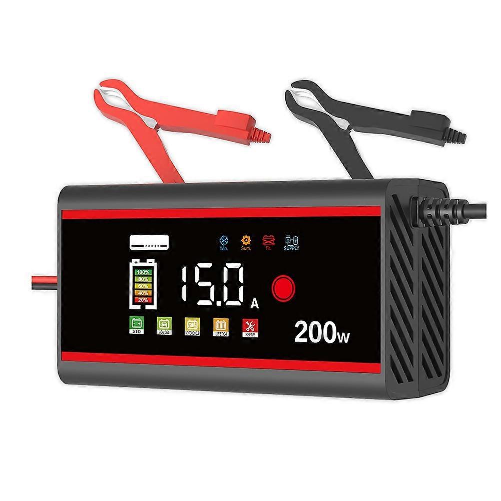 12V15A 200W Smart Car Battery Charger Car Motorcycle Battery Charging12V LiFePO4 Lead-Acid Battery Repair LCDDisplay(EU)