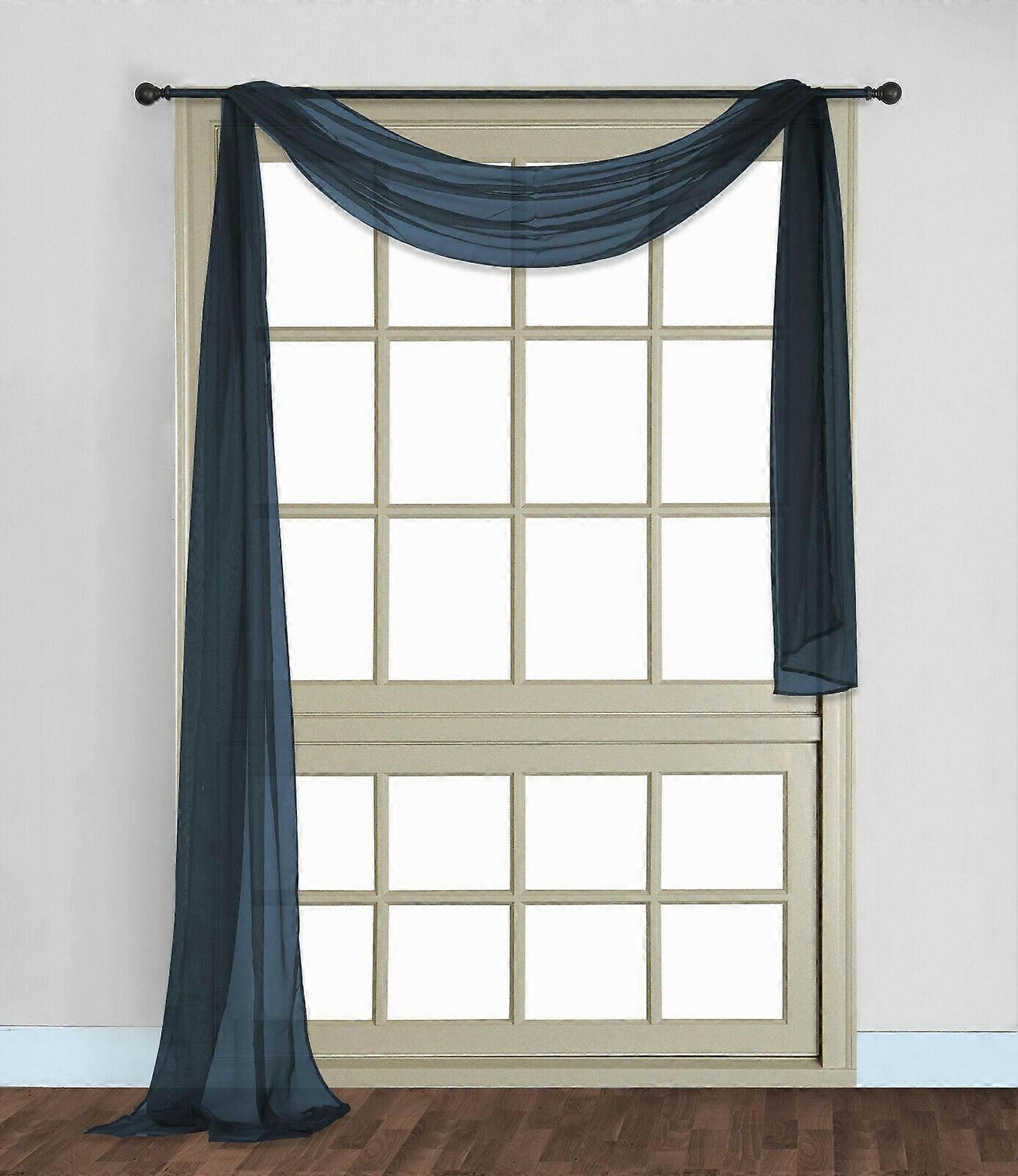 SAMIMPORT-2011 Elegant Navy Sheer Scarf Window Valance, 37” x 216”