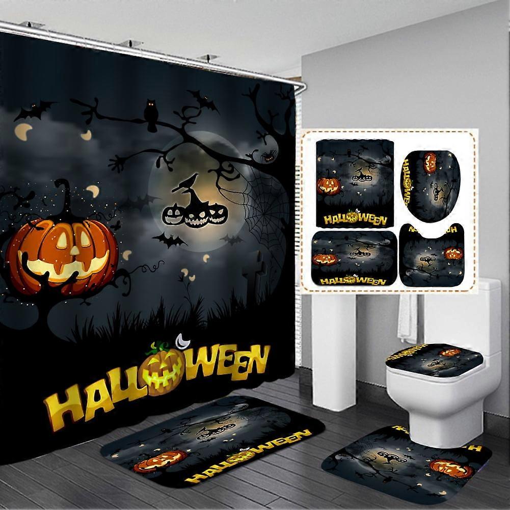 Halloween Shower Curtain Set 71"X71" with Rugs, Toilet Lid Cover, Bath Mat & 12 Hooks - Generic Bathroom Decor