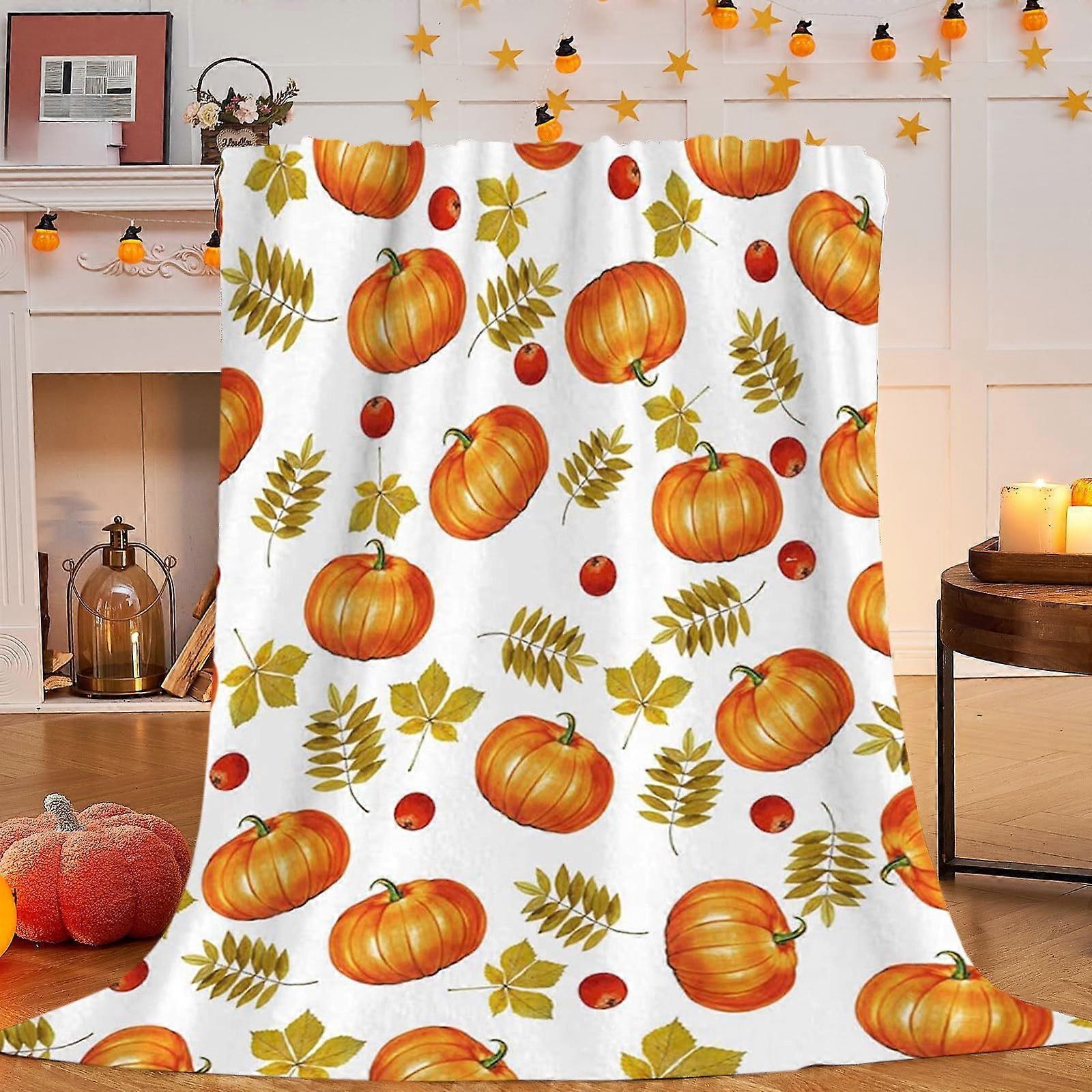 Cailmei And Thanksgiving Pumpkin Blanket Lightweight And Warm Flannel Wool Blanket Comfortable And Soft For Both Men And Women White