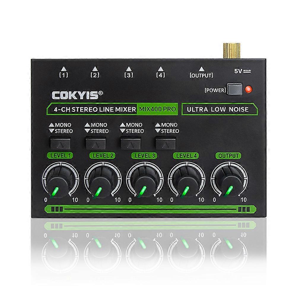 COKYIS MIX400 PRO 4 Channel Sound Mixer with RGB Light Mini Audio Mixer Line Mixer Small Audio Mixer for Club Bar US PLUG