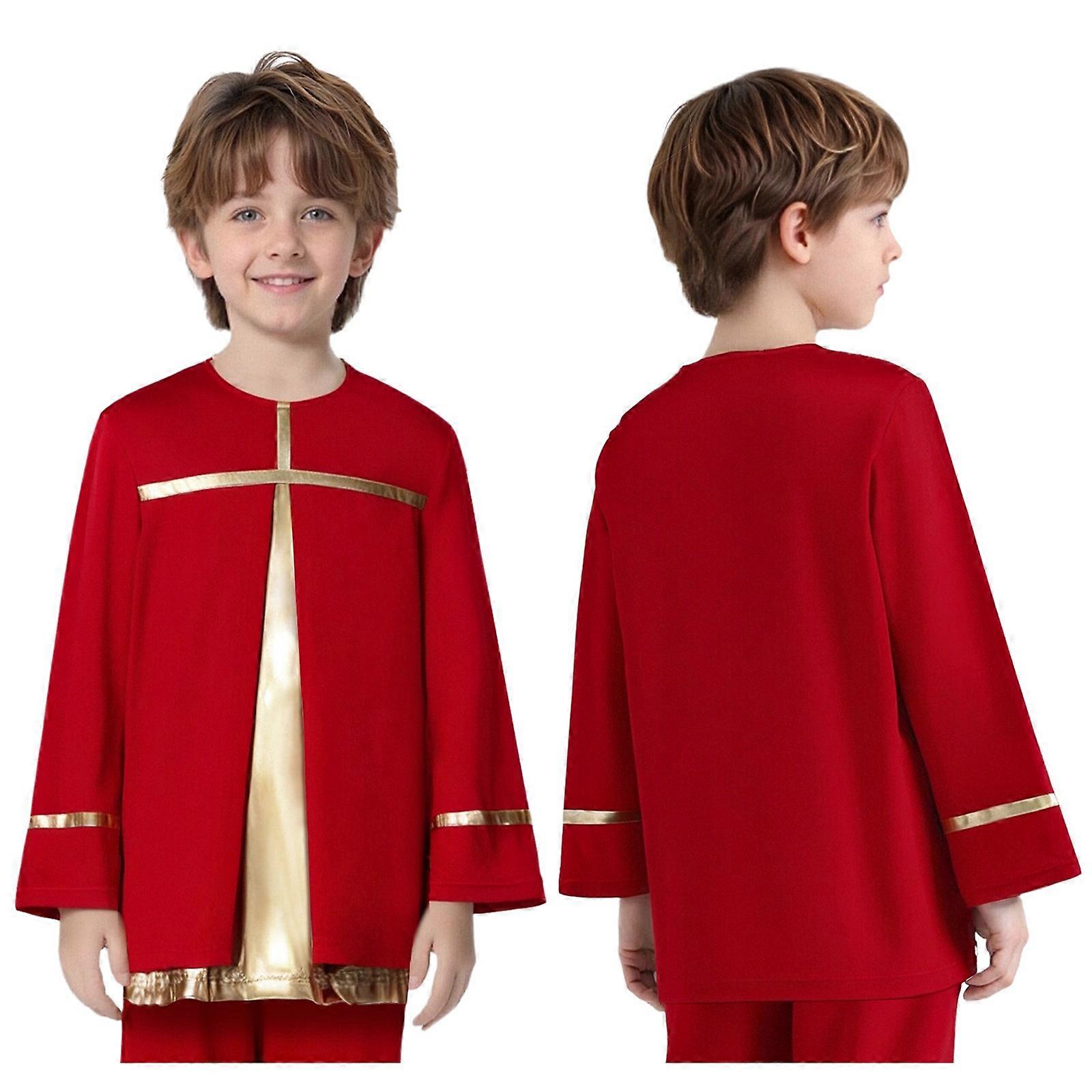 Kids Boys Praise Dance Pullover Top Metallic Patchwork Liturgical Worship Shirt