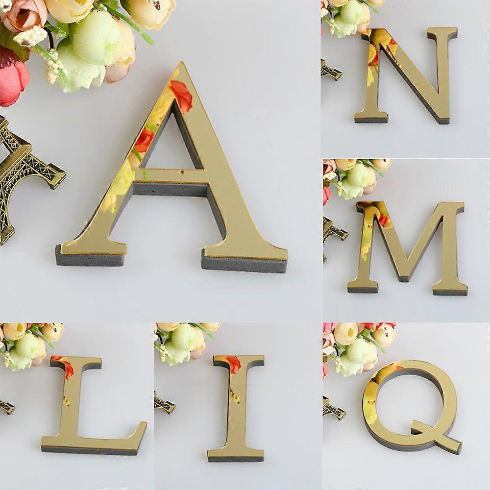 Golden 26 English Letters Wall Stickers Wall Art Alphabet Self-adhesive 3D Acrylic Mirror love letters Ornaments For Home Decor