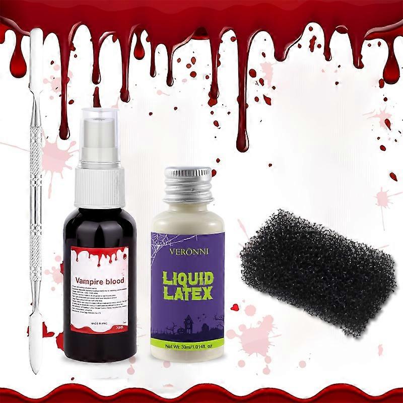 Liquid Latex SFX Makeup Kit with Blood Spray & Sponge Applicator - Realistic Wound Effects,Non-Toxic Safe Formula for Halloween