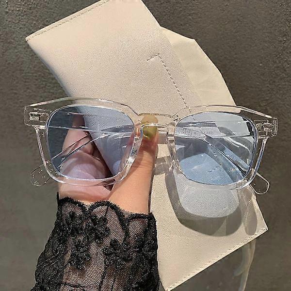 OIMG New Unisex Rectangle Vintage Sunglasses, Fashion Retro Design Compatible with Cat Eye, Transparent Blue