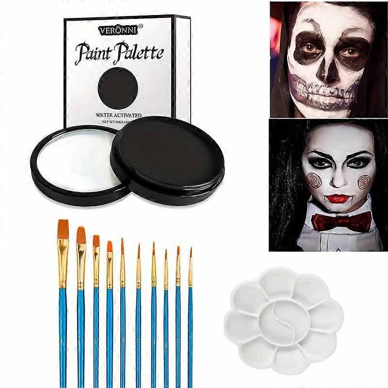 30g Water-Activated Body Makeup Face Paint Set 3-Piece with Brushes Mixing Palette for Halloween Christmas Costume Party Cosplay