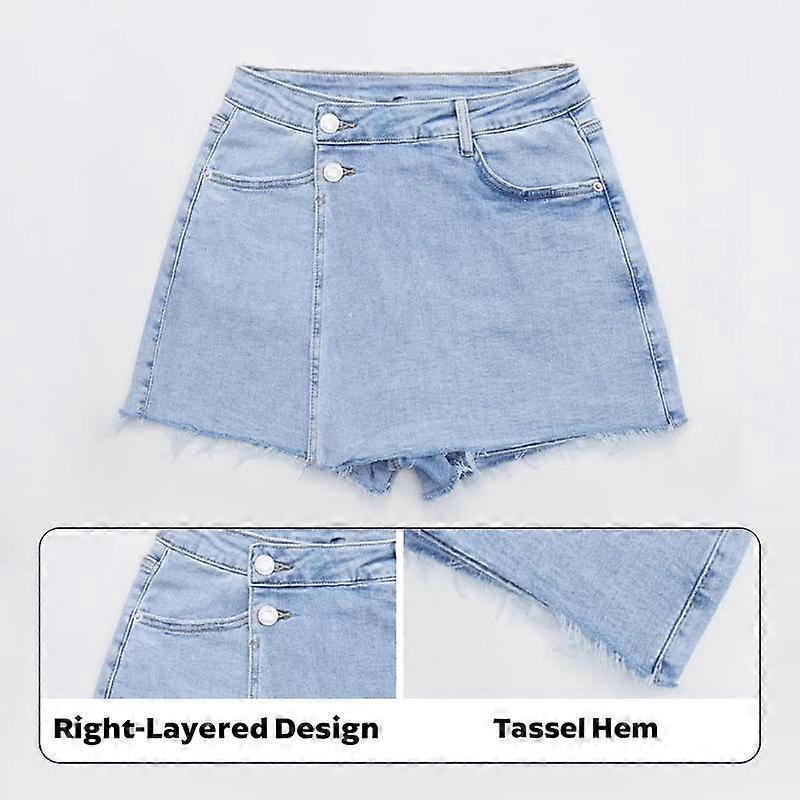 KatchMe Women's Leisure Layered High Waist Raw Hemline Denim Skorts, Chic Streetwear Outfits, Versatile Women's Bottom, Women's Summer Short