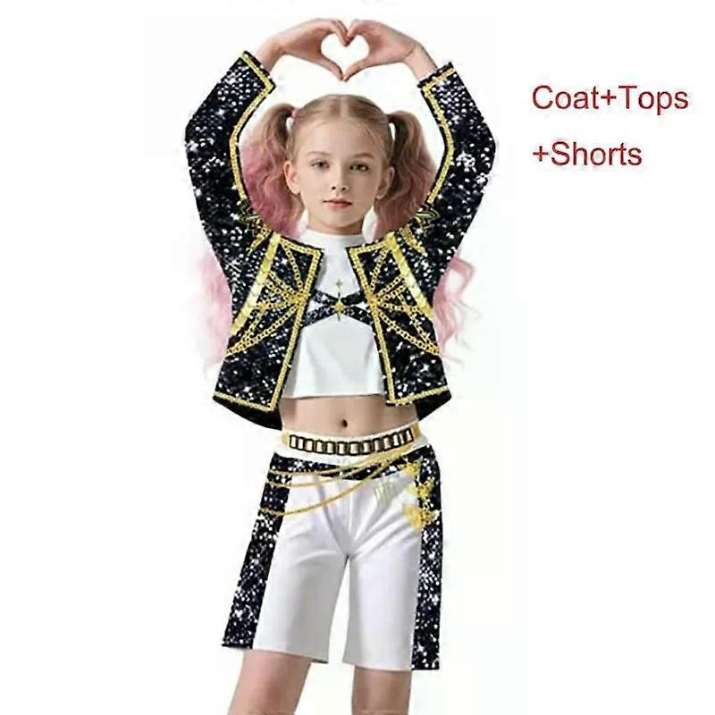 Girls Mira Rumi Zoey Stage Outfits Cosplay Black Costume Girls Uniform Halloween Party Role Playing Printed Fancy Dress Up Suits