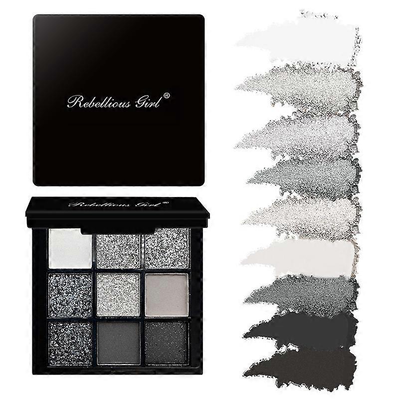 9 Colors Smokey Matte Glitter Eyeshadow Palette Punk Shimmer Shiny Eye Shadow Cosmetic Cool Toned Gray Black Eye Pigment Palett