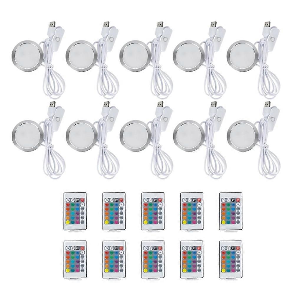10PCS USB 5V Multi Color Remote Control Mounted LED Spotlight, Wardrobe, Wine Cabinet, Circular Cabinet, RV Light