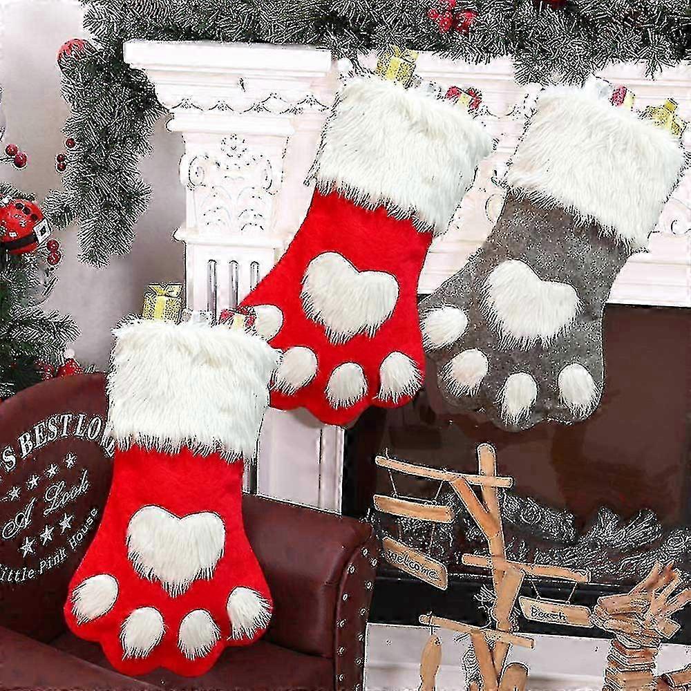 Christmas stockings, home decor accessories, plaid Christmas gift bags, pet dog and cat paw stockings, Christmas tree decorations, Grey