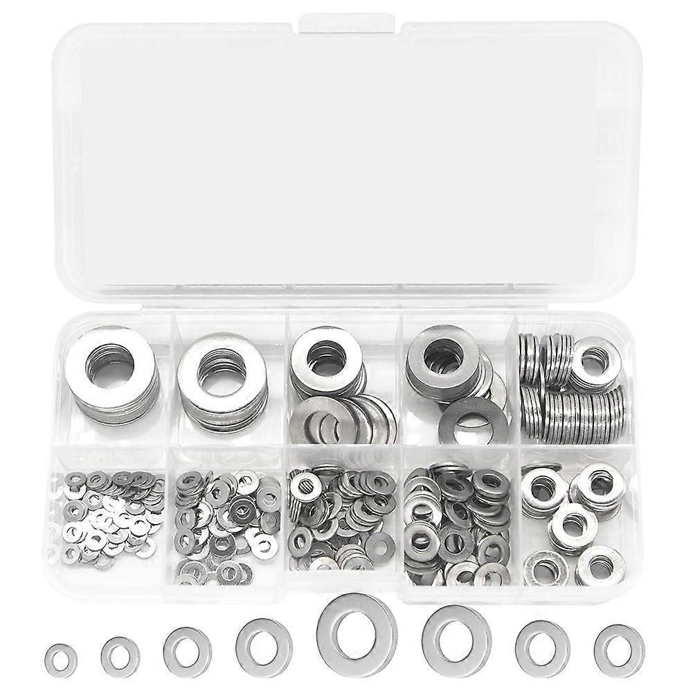 400pcs Flat Washer Assortment Kit Stainless Steel Flat Thin Gasket M2 M5 M6 M8 M10 Metal Threaded Gasket Flat Gasket