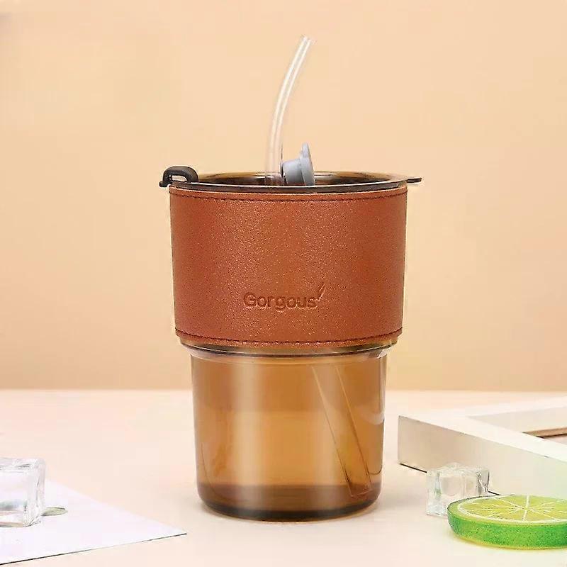 400ml with Lid Water Bottle Double Drinking Mouth with Straw New Creative Transparent Coffee Glass with Straw Coffee Mug Beer