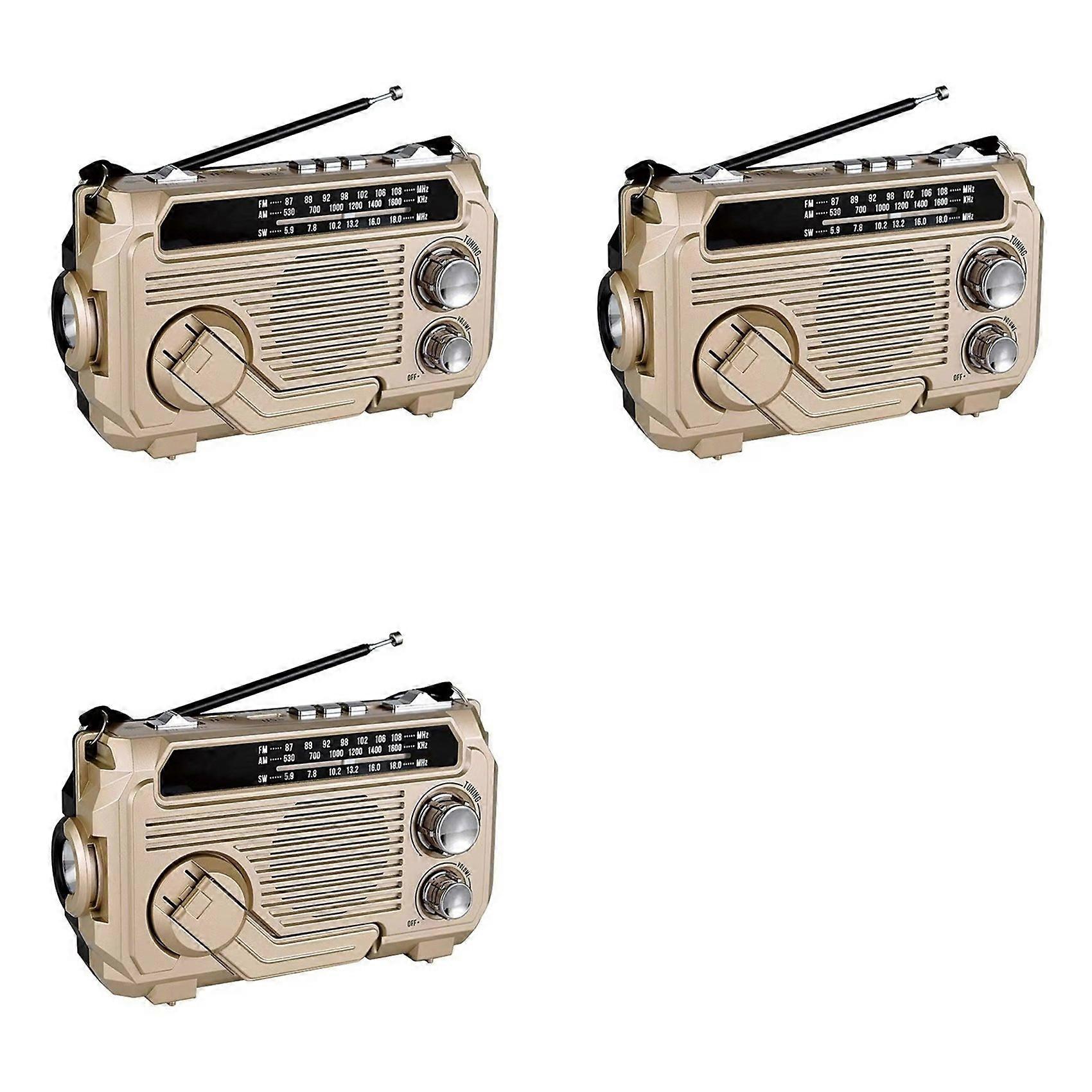 3X FM AM SW Radio Solar Charging Emergency Radios Receiver Hand Crank Bluetooth 5.2 Support TF USB Gold