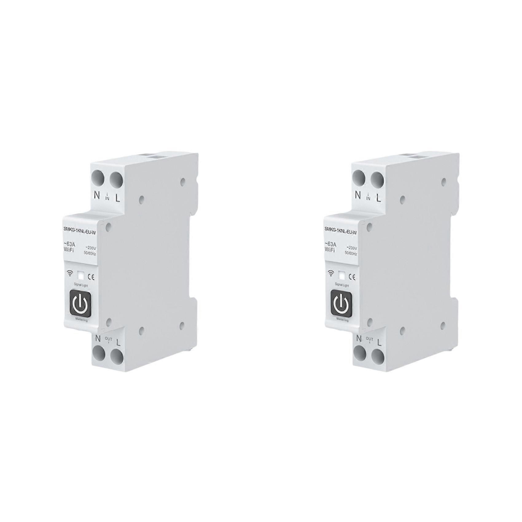 2X Tuya WIFI Smart Circuit Breaker 1P+N 1A-63A Adjustable DIN Rail with Metering Work with Smart Life Alexa Home