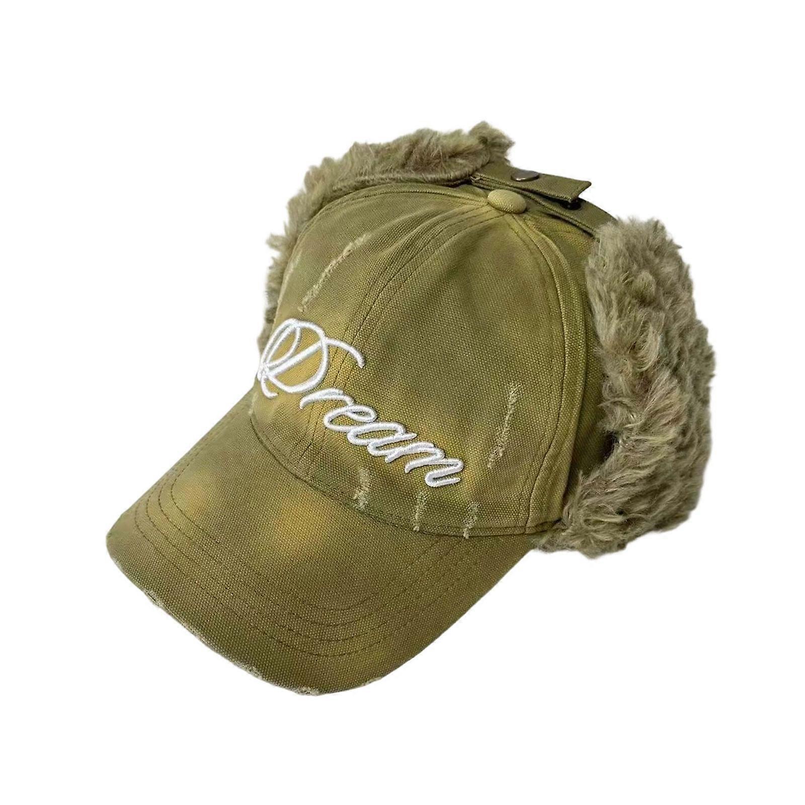 Cotton Embroidered Ear Flap Baseball Cap with Korean Styles Distressed Design Fashionable for Winter Activities and Daily Wear Yellow