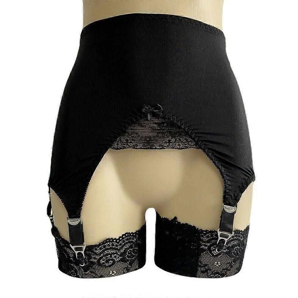 High Waist Women Open Bottom Shaping Girdle Garter Belt W 6 Claws Lace Patchwork