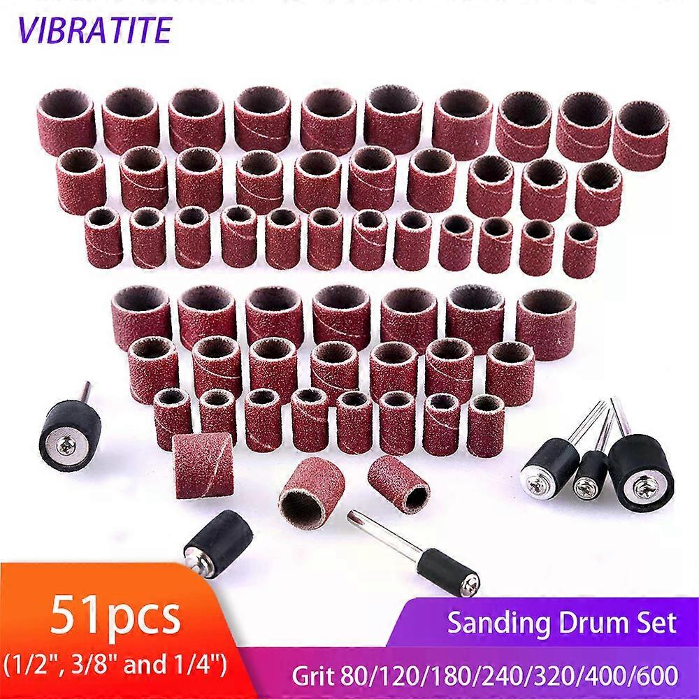 51Pcs Sanding Drum Kit 80-600Grit Drum Sander Nail Sanding Band Sleeves With Drum Mandrels for Dremel Rotary Tool