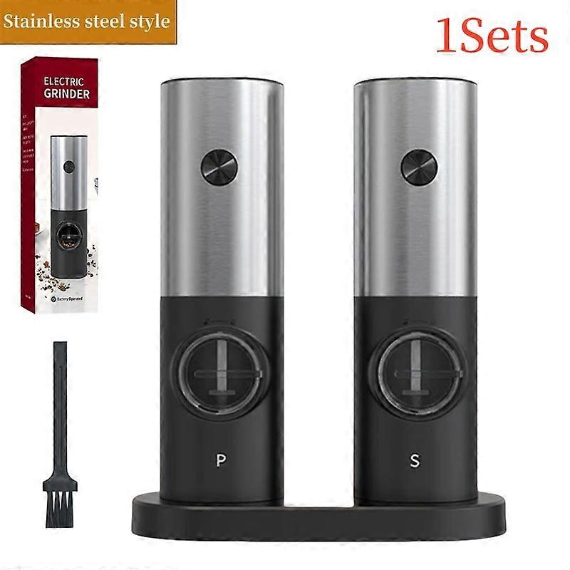 Automatic Pepper Grinder Set Salt And Pepper Mill Spice Shaker Battery Powered Adjustable Coarseness Mill With Base LED Light