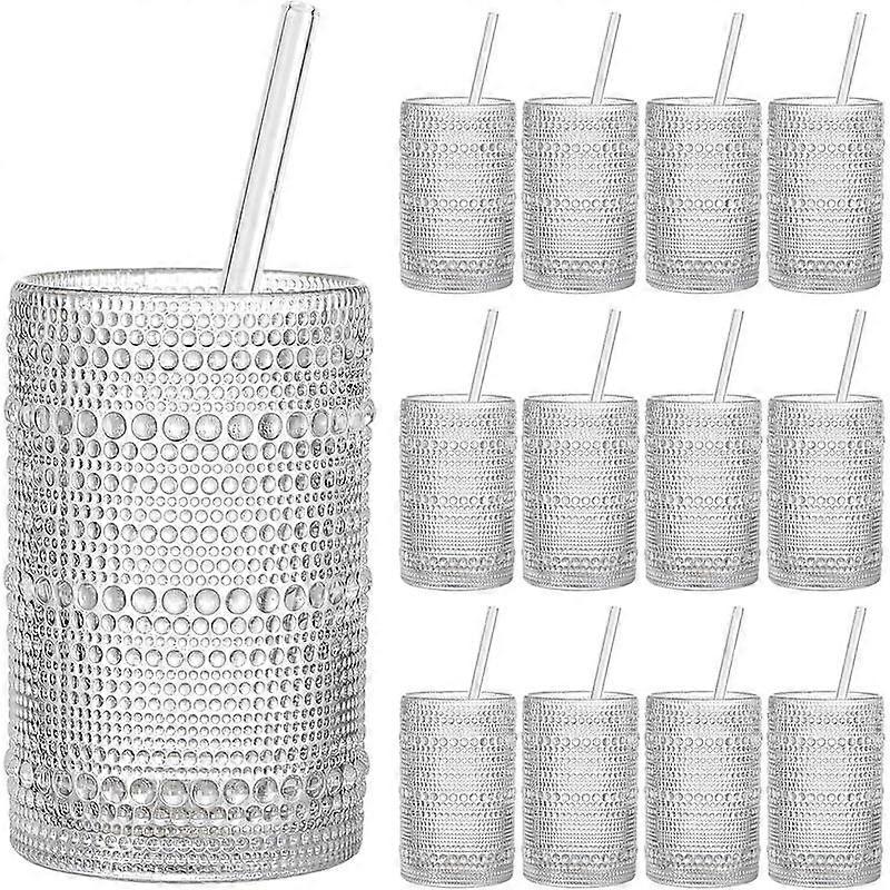 Hobnail Drinking Glasses Set of 12, 15oz Textured Tumblers - Embossed Clear Bar Glasses for , , , Dishwasher-Safe Highball Cups for Kitchen,