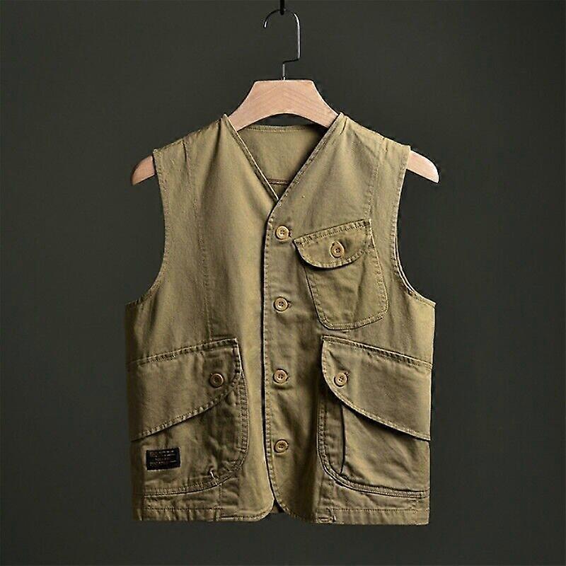 Men Waistcoat Gilet Cargo Vest Top Pocket Sleeveless Jacket Military Retro Top