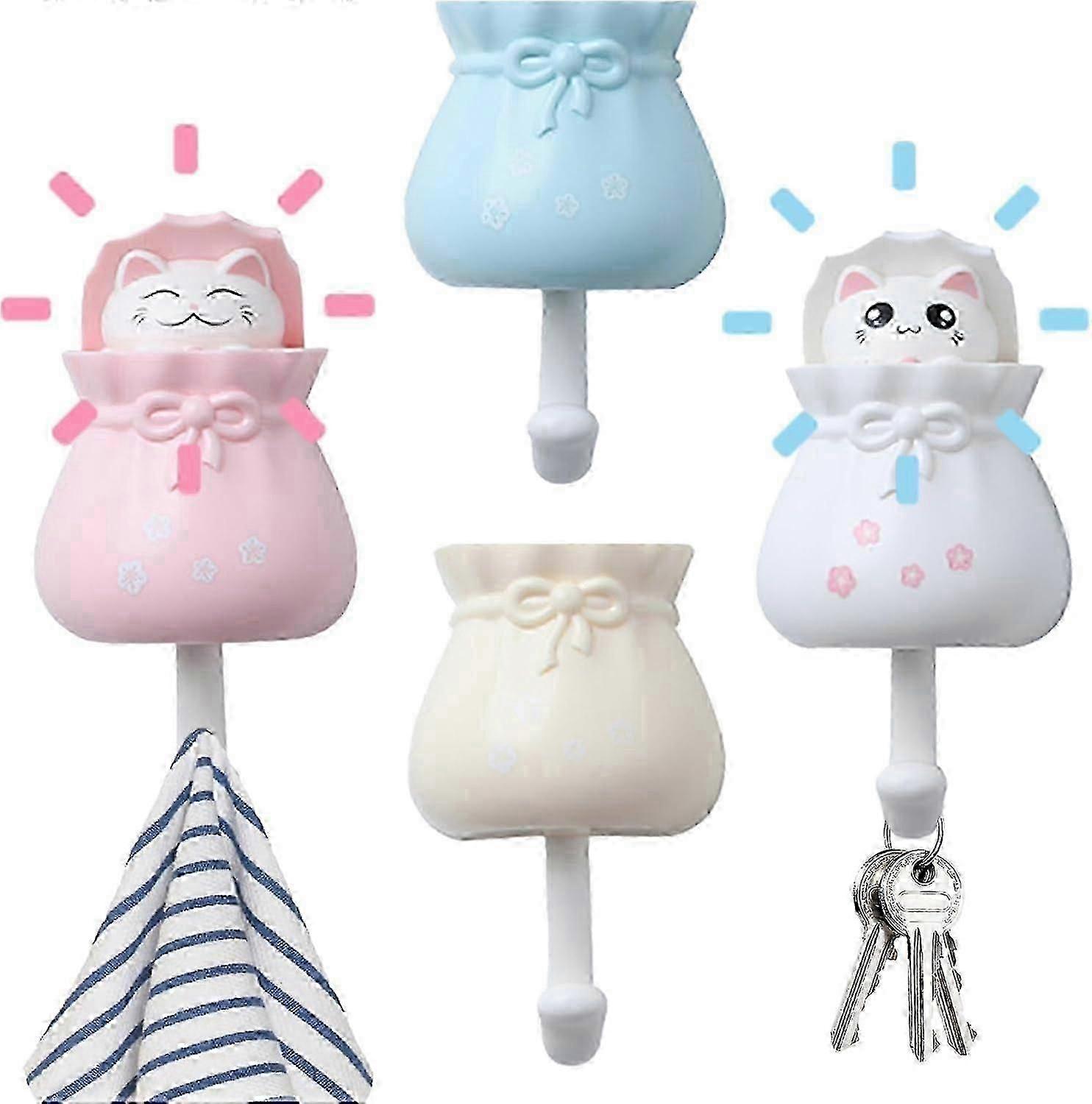 4-Piece Cute Cat Key Holder Set - Heavy Duty Self-Adhesive Wall Hooks for Scarves, Hats, and Bags