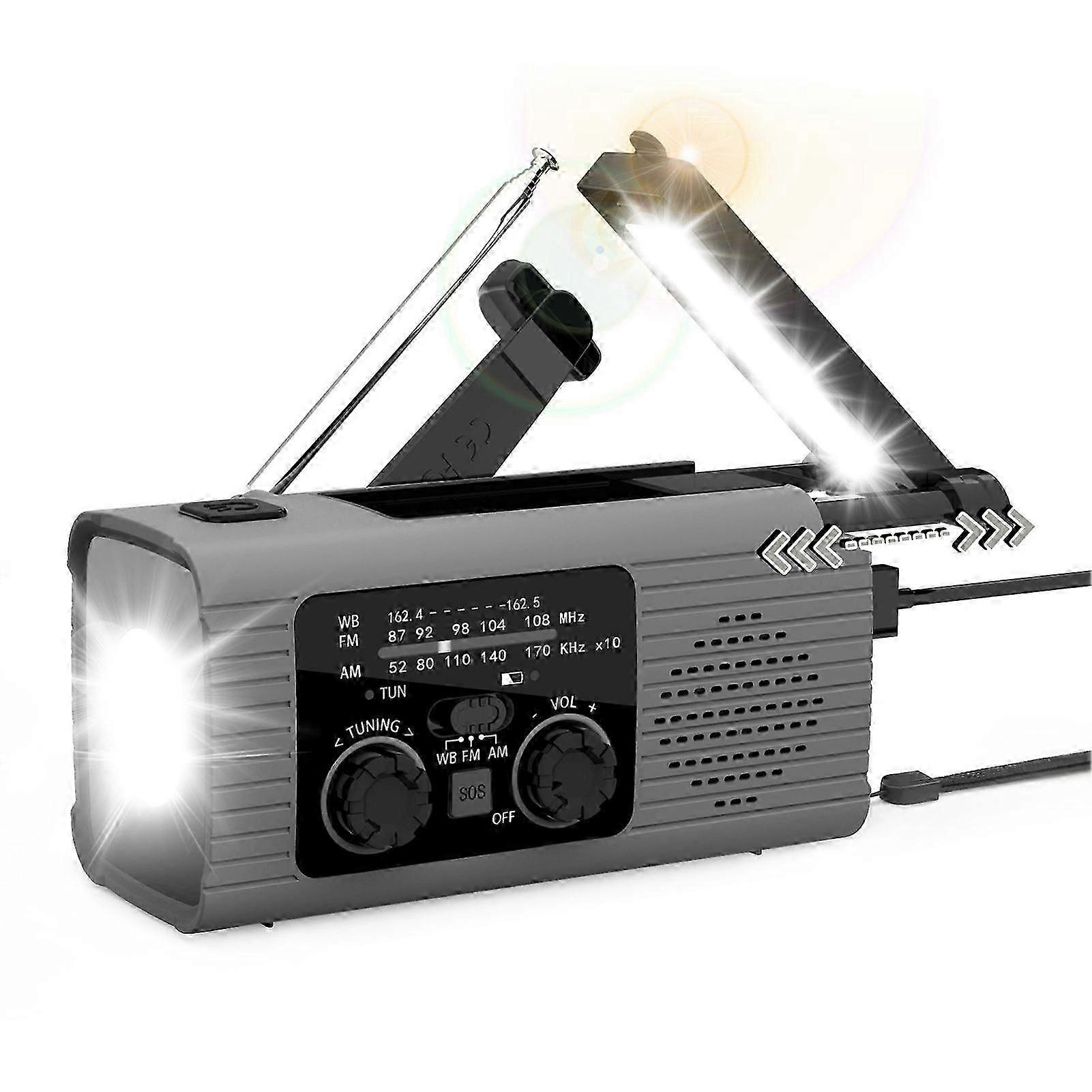 Multi-Function Emergency Radio - Hand Crank & Solar Powered with Flashlight, SOS, and Power Bank for Outdoor Safety