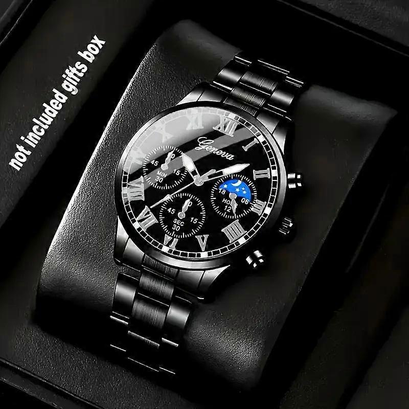 Geneva High-Quality Men's Luxury Leather Belt Fashion Quartz Watch, Casual Round Business Sports Watch for Men