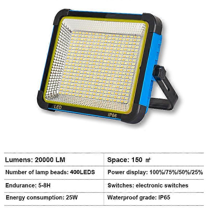 20000LM USB Rechargeable LED Solar Flood Light 10000mAH with Magnet Strong Light Portable Camping Tent Lamp Work Repair Lighting