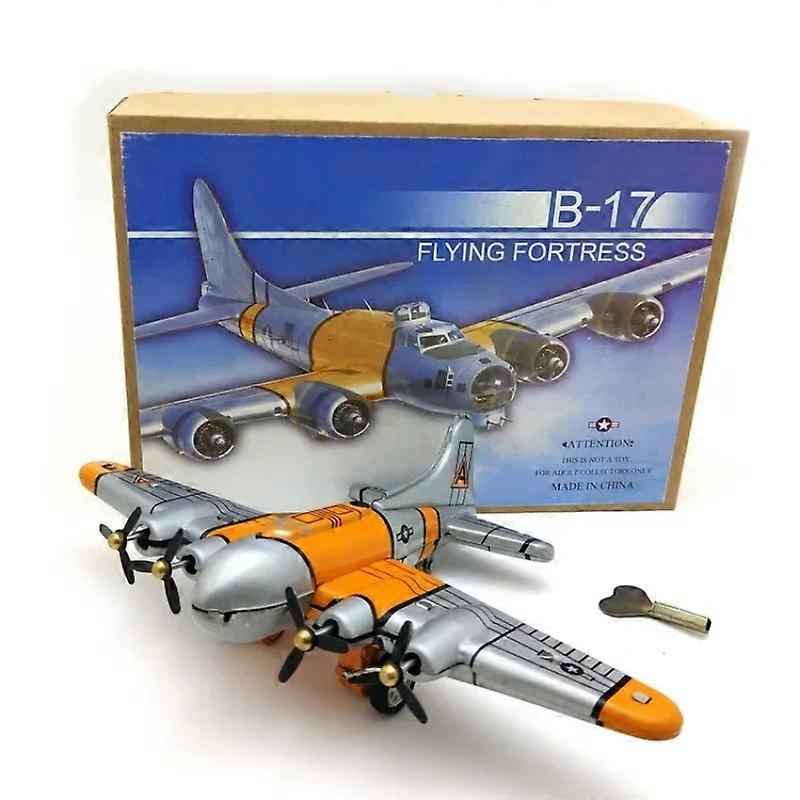 [Funny] Adult Collection Retro Wind Up Toy Metal Tin Flying Fortress Bomber Propeller Plane Clockwork Toy Model Vintage Toy Gift