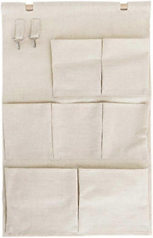 Hanging storage bags with 5pockets, easy to organize your various small things such as phone, keys, cosmetics etc. Made of nature cotton and linen with PE coated. Durable and moistureproof. Come with a wooden pole which is very convenient to hang. Save your space as well as storage your sundries Measures:17.5"tall x 14"wide.
