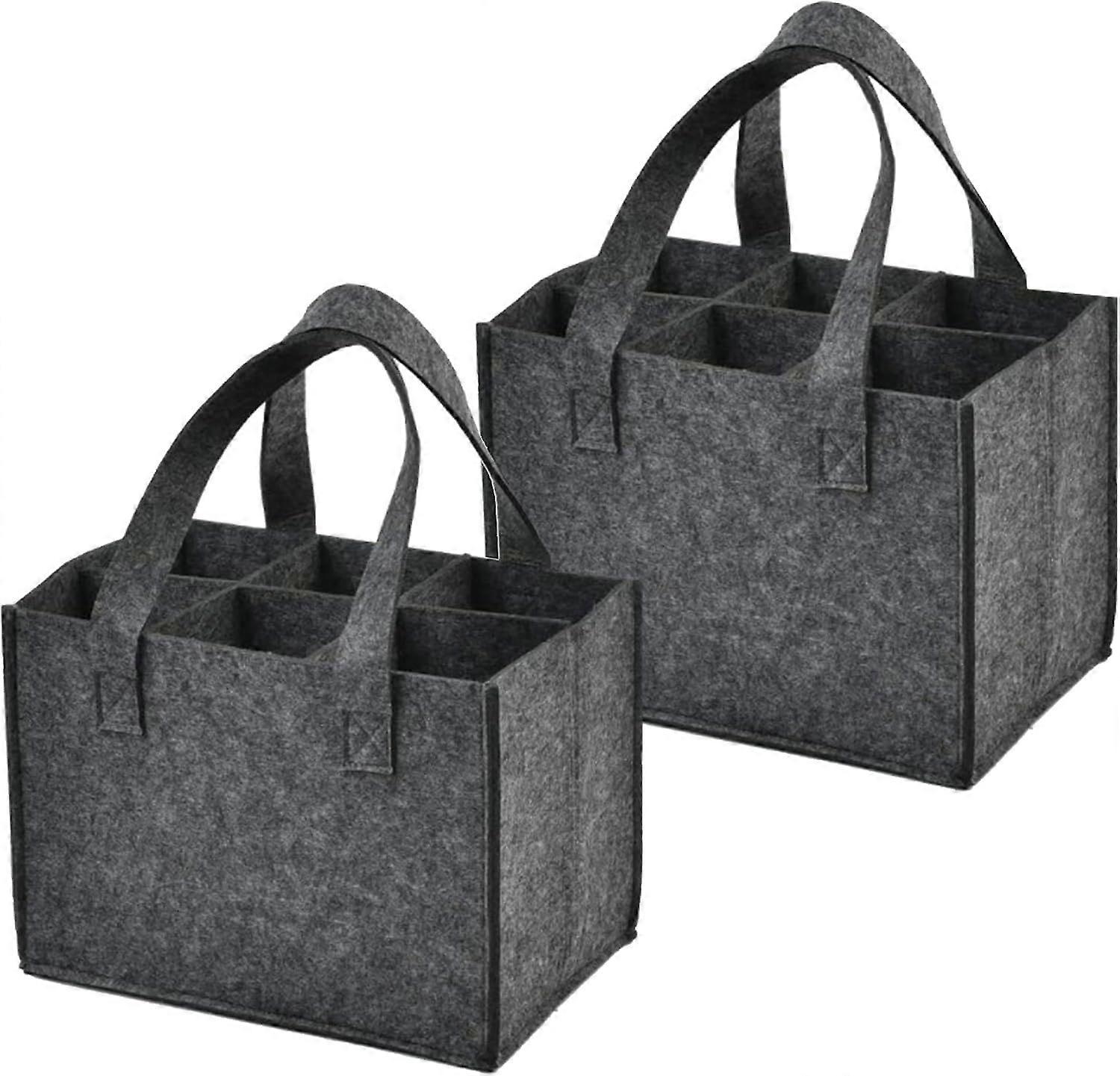 2-Pack Heavy-Duty Felt Wine Bags with Handles, Bottle Carriers, 6-Bottle Felt